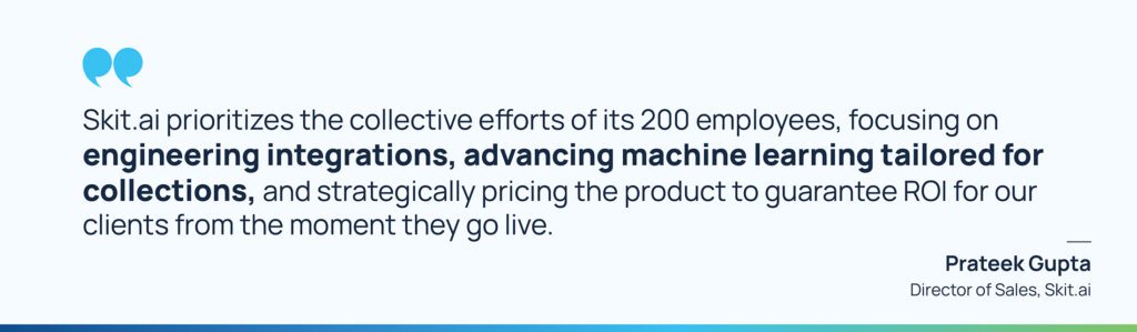 “Delivering value to customers is the only way to achieve long-term success, and Amazon.com is a great example that comes to my mind. Different industries perceive value in different ways. For us at Skit.ai, the trick is to quantify the perceived value in dollars and charge a fraction of that value for our solution. In the current financial market, the second thing we worry about is our gross margins, so we don’t indulge in pricing wars with the competition. We would rather focus on delivering higher value and charging a small fraction of that value while keeping a healthy gross margin.”