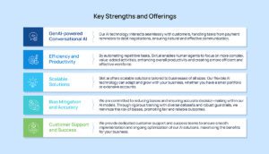 Payment Arrangements: Conversational AI can negotiate payment plans, set up installments, and provide information on outstanding balances.